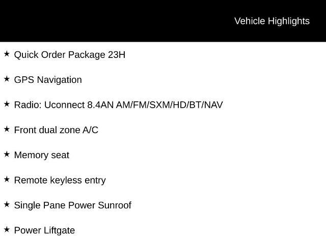 - Radio: Uconnect 8.4AN AM/FM/SXM/HD/BT/NAV
