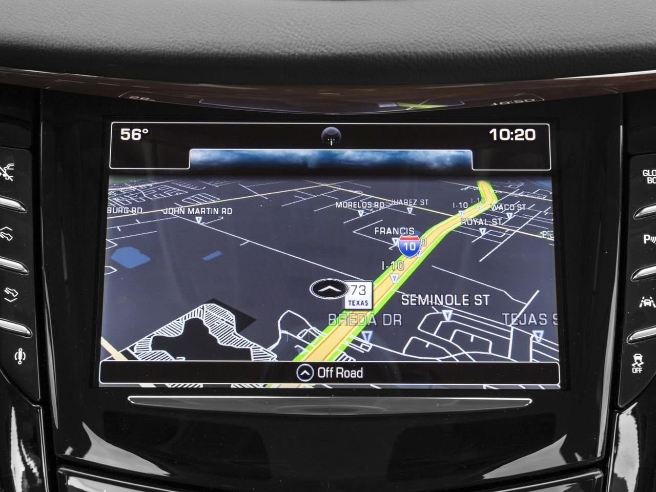 - CADILLAC CUE INFORMATION AND MEDIA CONTROL SYSTEM WITH EMBEDDED NAVIGATION 8" diagonal color information display featuring touch response, haptic feedback, gesture recognition, Natural Voice Recognition and Phone Integration for Apple CarPlay capability for compatible phone. Five USB ports, including one in the articulating storage door/bin and auxiliary audio port (STD) (IO6)