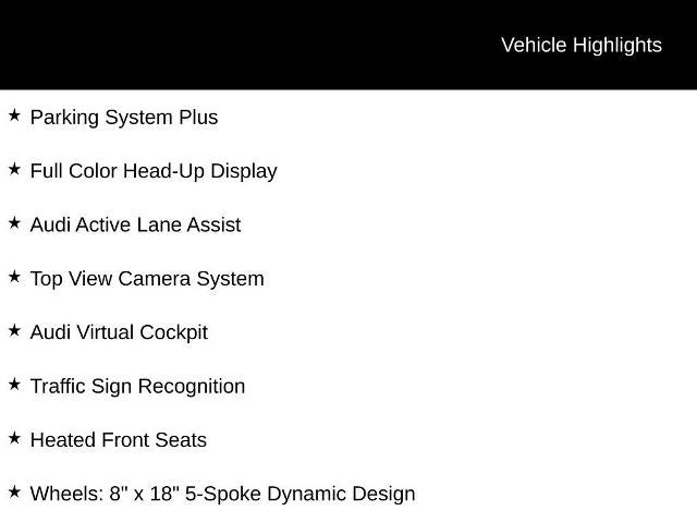 The Prestige trim level elevates this A4 with a host of premium features, including the Cold Weather Package, Convenience Package, Driver Assistance Package, Interior Lighting Package, and Technology Package. Highlights include full LED headlights, Audi Active Lane Assist, Traffic Sign Recognition, and a power moonroof.