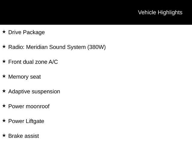 - Radio: Meridian Sound System (380W) -inc: 11 speakers including subwoofer, SSD navigation system, InControl Apps, InControl Pro Services for warranty period, Touch Pro Duo, Bluetooth® connectivity, voice control, 2 USB ports in 1st row and 12V power socket in 2nd row and trunk