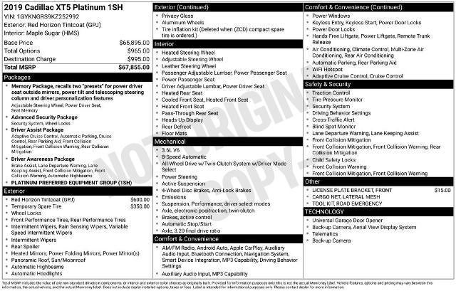The Platinum Package 1SH takes this XT5 to new heights, offering an array of luxurious amenities such as: