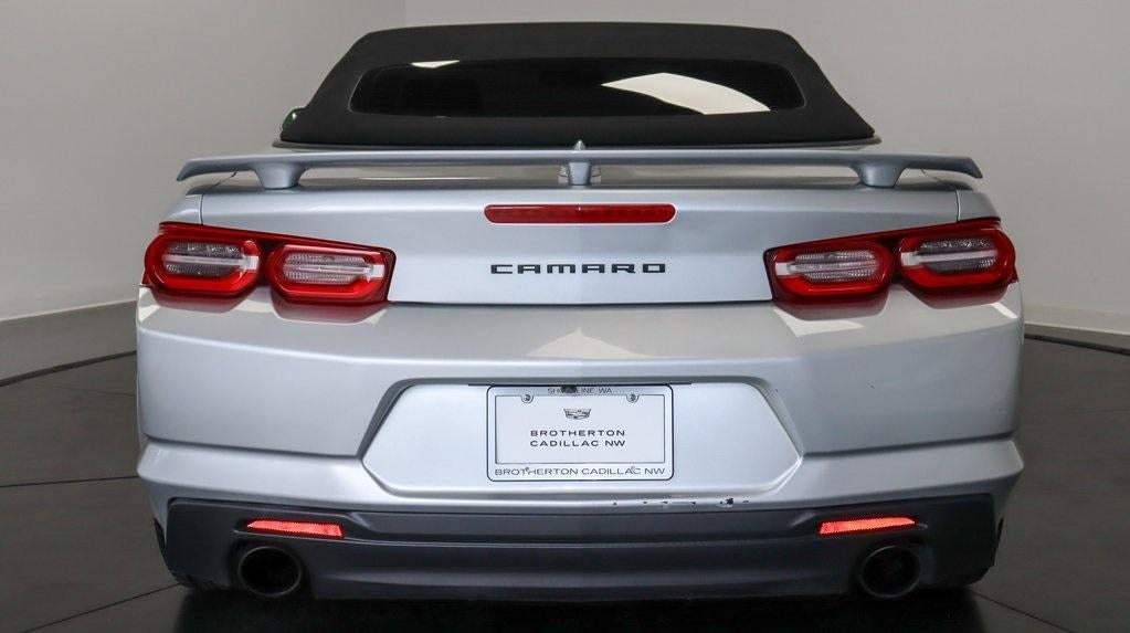 This vehicle presents with a clean Carfax report and is exceptionally well-equipped. It is a 2019 Chevrolet Camaro 1LT, a 2D Convertible featuring a 3.6L V6 DI engine paired with an 8-Speed Automatic transmission and rear-wheel drive. The exterior is finished in Silver Ice Metallic, complemented by a Jet Black Cloth interior. Standard features include a 6-Speaker Audio System, Bluetooth® connectivity, Electronic Stability Control, a rearview camera, fully automatic headlights, low tire pressure warning, and the Preferred Equipment Group 1LT. Additional features include Radio: Chevrolet Infotainment 3 System, SiriusXM Radio, cruise control, and variably intermittent wipers. This vehicle is currently located at Brotherton Auto Group in Shoreline and achieves 19/29 City/Highway MPG.
