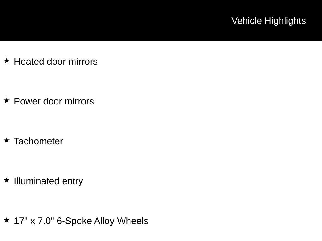 - Wheels: 17" x 7.0" 6-Spoke Alloy