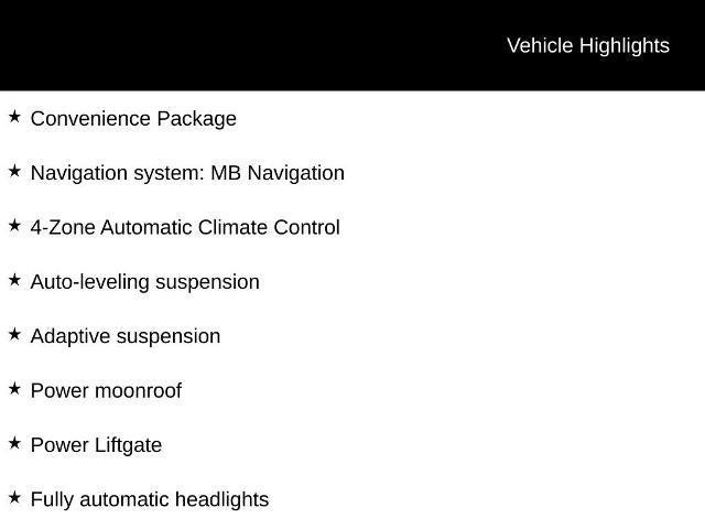 GLS 450 4MATIC®, 4-Zone Automatic Climate Control, Adaptive suspension, Apple CarPlay®/Android Auto®, Auto-leveling suspension, Convenience Package, Fully automatic headlights, Heated & Ventilated Front Seats, MB-Tex Upholstery, Navigation system: MB Navigation, Panorama Roof, Power Liftgate, Power moonroof, Rain sensing wipers.