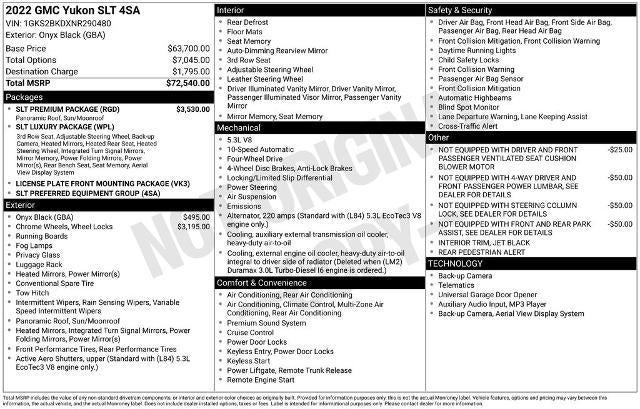 As a certified pre-owned vehicle, this 2022 GMC Yukon SLT Premium has undergone a rigorous 172-point inspection and comes with a comprehensive warranty and maintenance plan. You can drive with confidence, knowing that this SUV has been meticulously cared for and is ready to provide years of exceptional service.