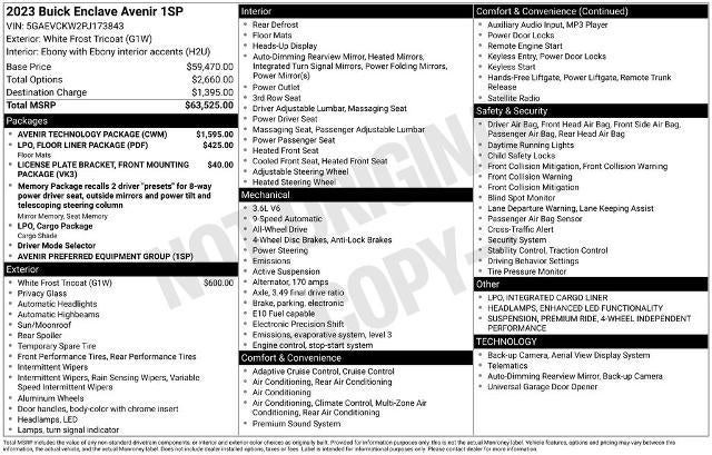 Elevate your driving experience with this exceptional 2023 Buick Enclave Avenir. Boasting a striking White Frost Tricoat exterior and a meticulously maintained interior, this Certified Pre-Owned SUV is the epitome of refined luxury and performance.