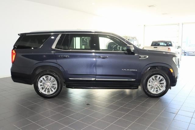 2023 GMC Yukon SLT, equipped with the EcoTec3 5.3L V8 engine and 4WD, presents in a striking Titanium Rush Metallic exterior with a luxurious Jet Black Leather interior.