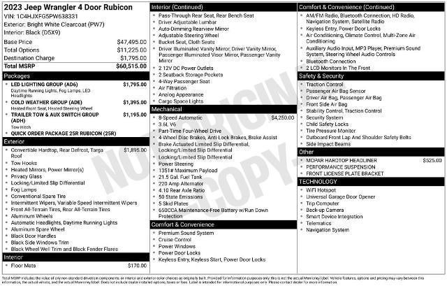 Whether you're tackling the trails or navigating the city streets, the 2023 Jeep Wrangler Rubicon is the ultimate expression of freedom and capability. Experience the thrill of the open road and the exhilaration of off-road exploration in this exceptional vehicle. Visit our showroom today and let us demonstrate why the Wrangler Rubicon is the perfect choice for your next adventure.