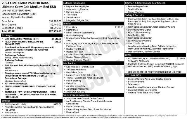 - DENALI ULTIMATE PREFERRED EQUIPMENT GROUP includes standard equipment (5SB)