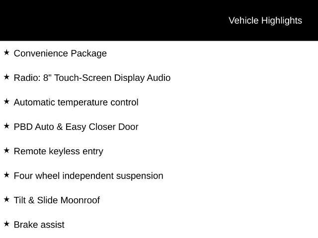 - Convenience Package with PBD Auto & Easy Closer Door and Tilt & Slide Moonroof