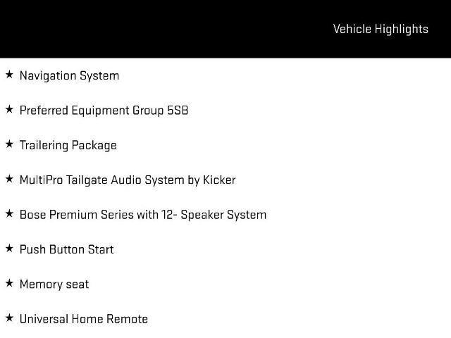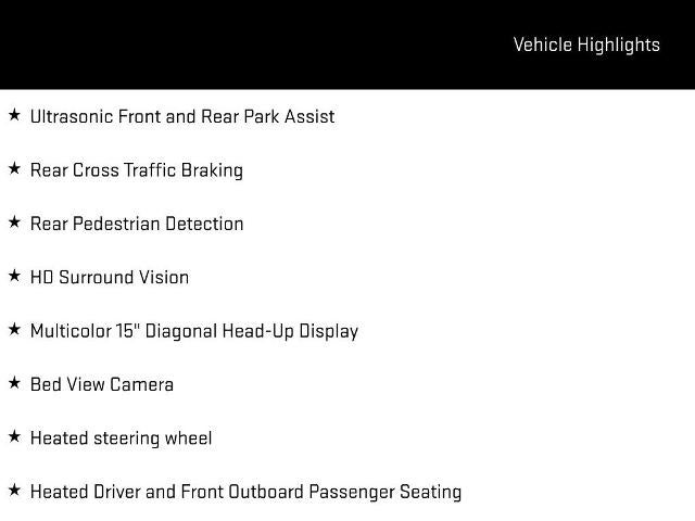 - Bed View Camera camera in the CHMSL to show a view of the cargo bed, display located in infotainment screen (Includes Trailer View Camera Provisions and Trailer Assist Guidelines.)