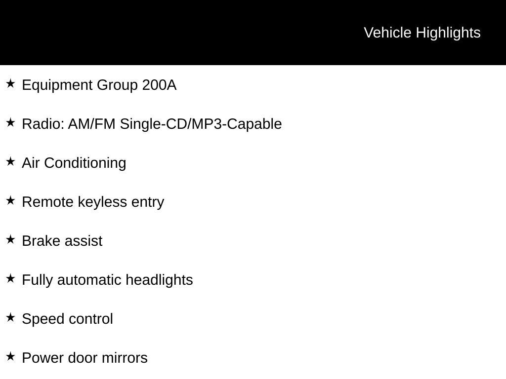 - AM/FM stereo w/CD/MP3 player -inc: aux input jack, speed-sensitive volume, (6) speakers