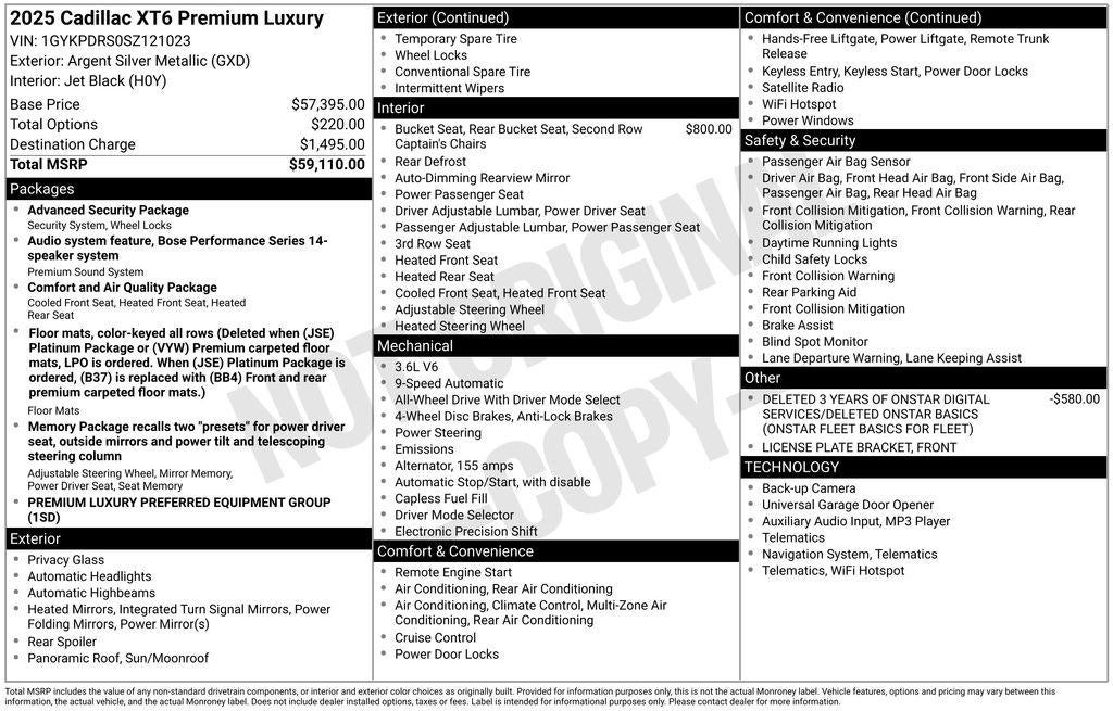 Elevate your driving experience with this stunning 2025 Cadillac XT6 Premium Luxury. This exceptional SUV is priced below Kelley Blue Book retail, making it an unbeatable value that you won't want to miss.